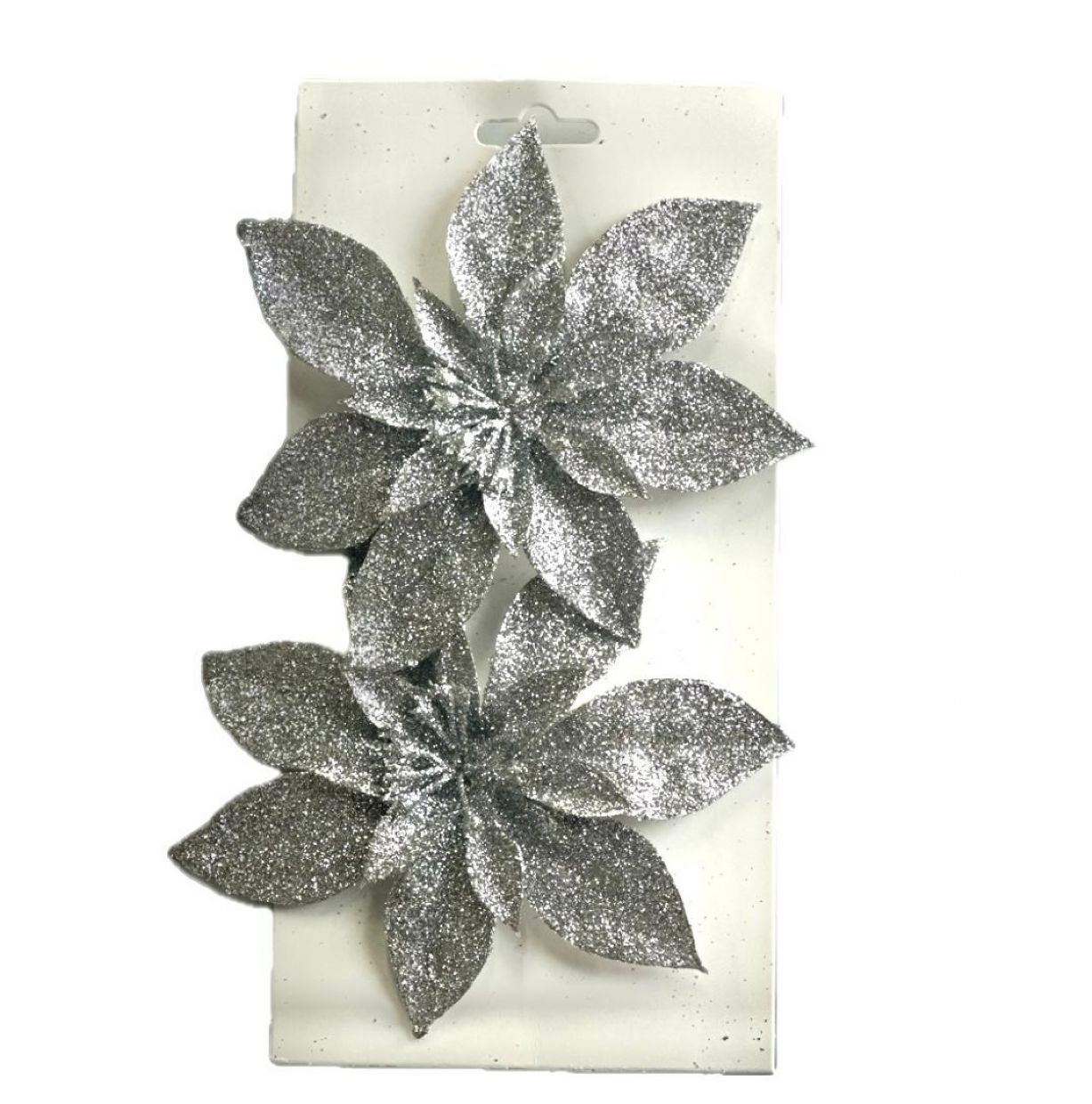 Glitter Pointsettia 2pc Silver 15cm
