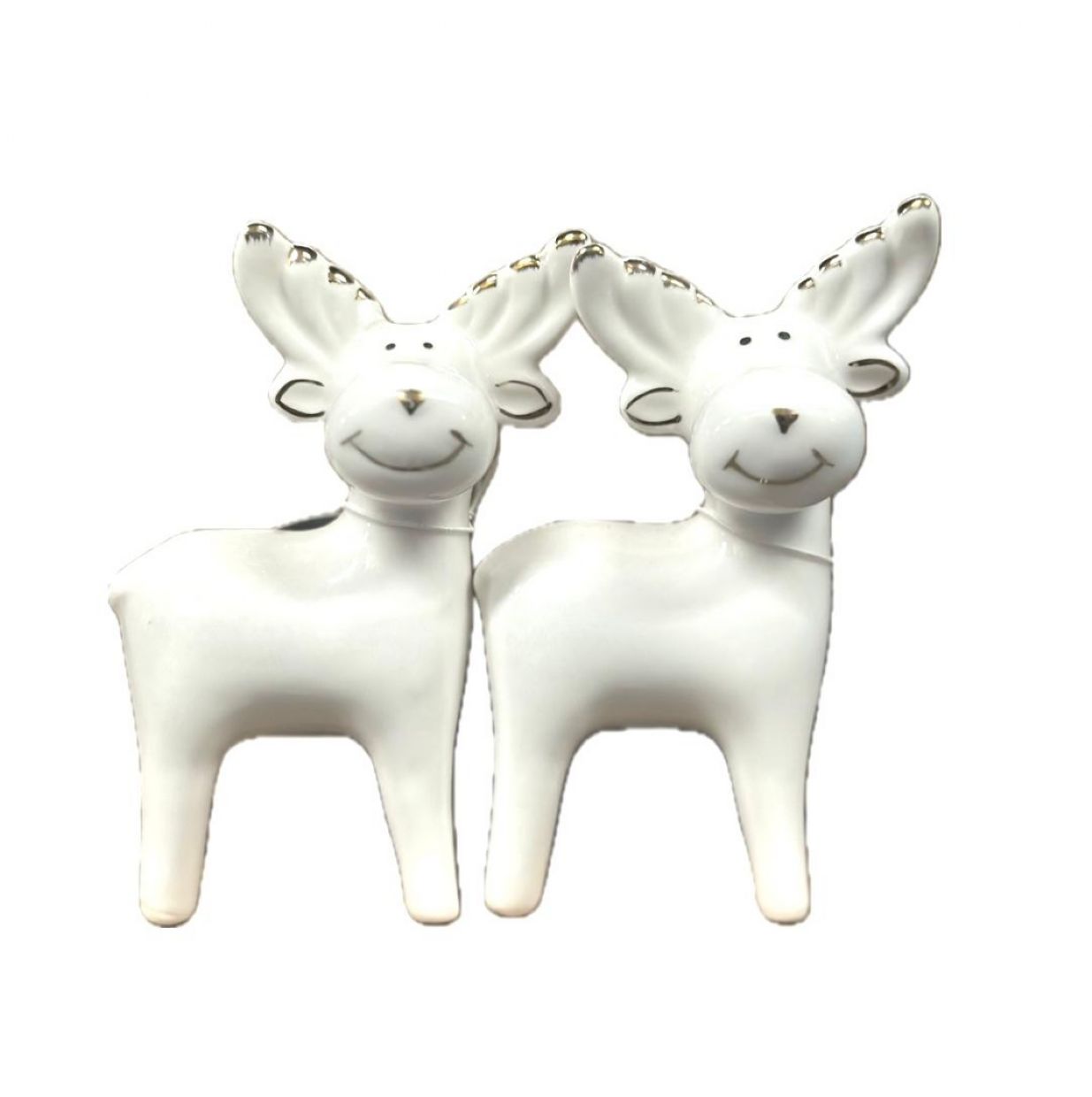 > Ceramic Reindeer Standing W/Gold Edging 11cm