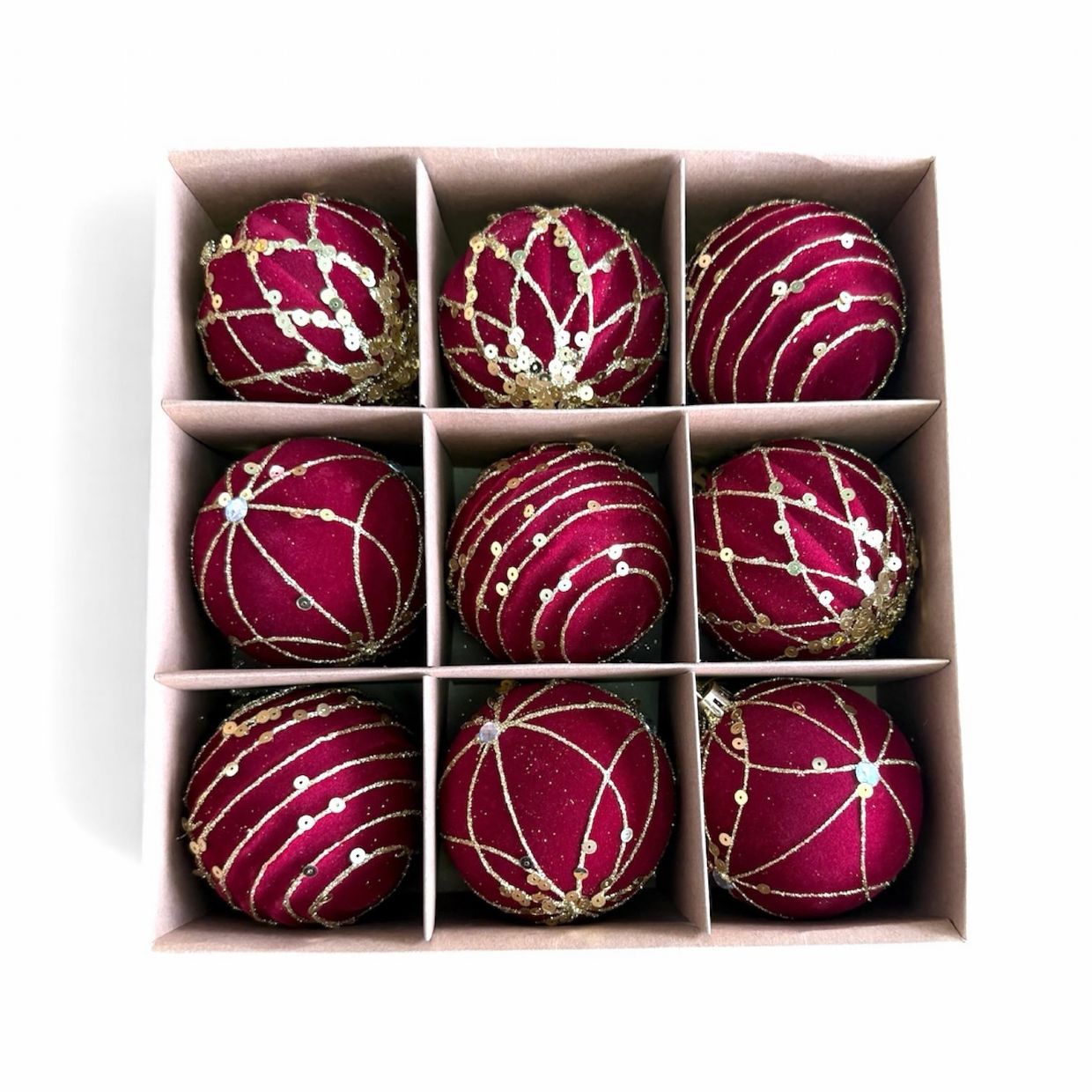 > Velvet Red Baubles x9 80mm