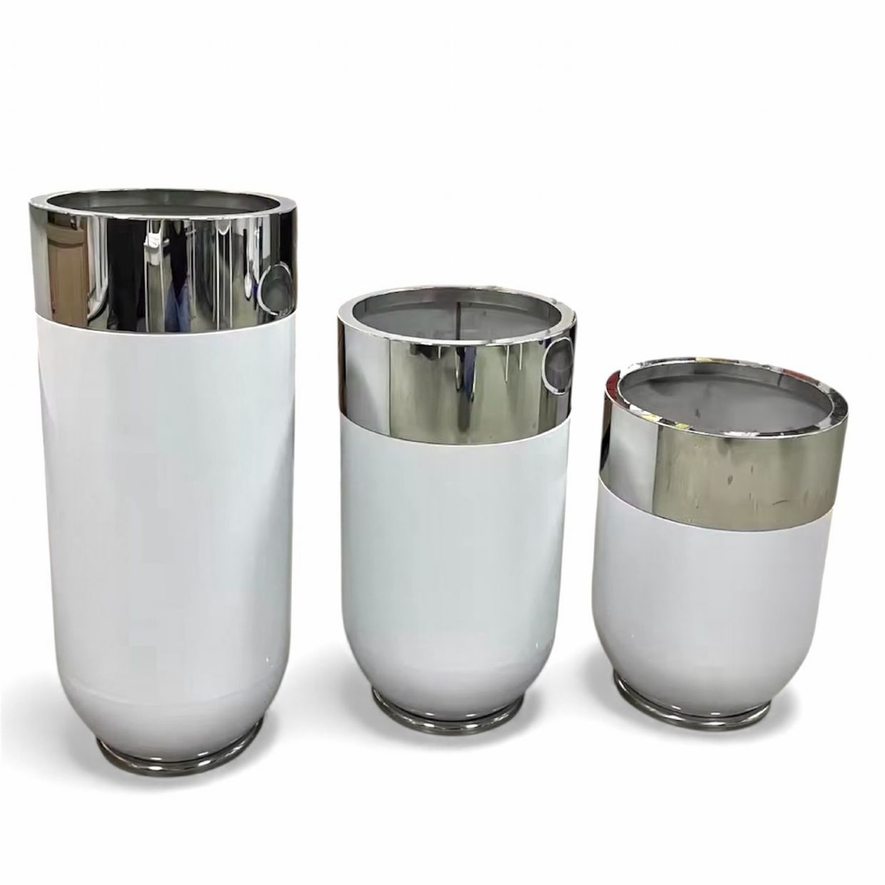 > Plastic Flower Planter White/Silver Rim