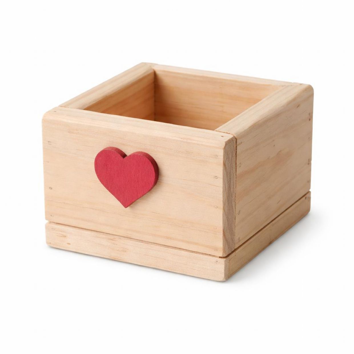 Wooden Cube Box W/Red Heart 18Lx15Wx10H