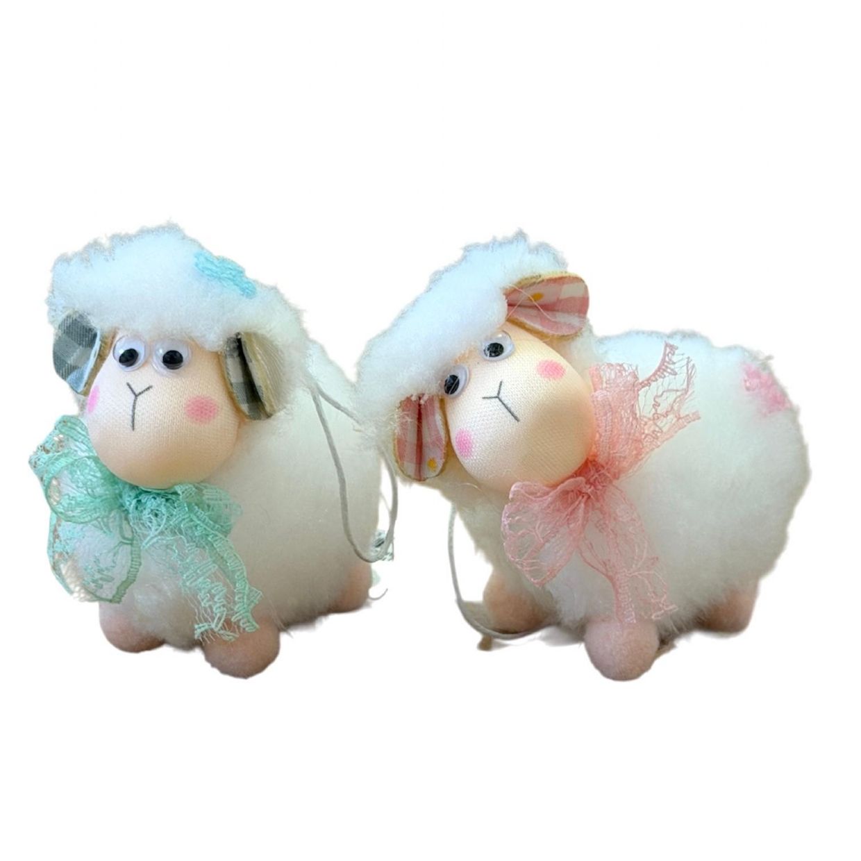> Fluffy Sheep W/Lace Ribbon 8cm