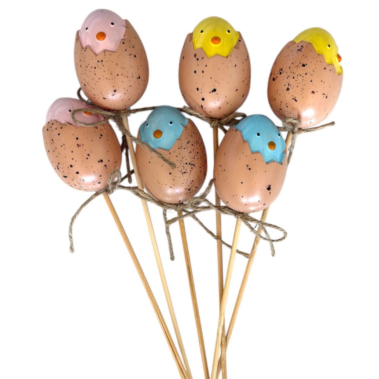 > Cracked Egg W/Chick Heads On Stick x6