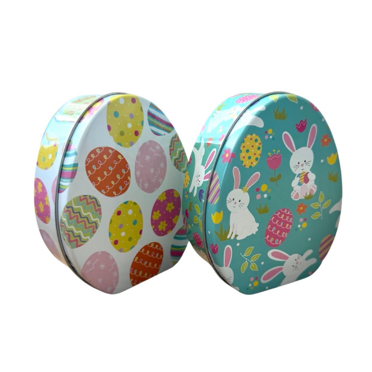 Egg Shape Tin W/Asst. Designs 11Lx9cm
