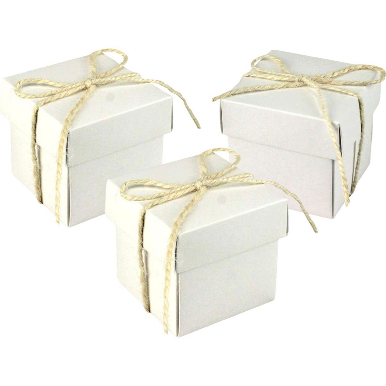 White Favour Sq Box With Bow 12 p/pkt 5cm